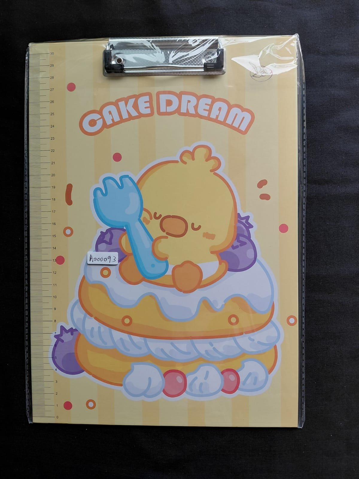 Brighten your workspace with the Cake Dream Clipboard, featuring a delightful yellow chick perched atop a delicious cake and holding a playful blue fork. This charming clipboard adds a sweet, whimsical touch to organizing your documents, making everyday tasks more enjoyable. Crafted from durable, lightweight materials, it measures 9 x 12.5 inches?perfect for standard letter-sized papers. The vivid colors and sturdy metal clip ensure your papers stay secure in style, making it a thoughtful gift for students, teachers, and anyone who loves adorable stationery.