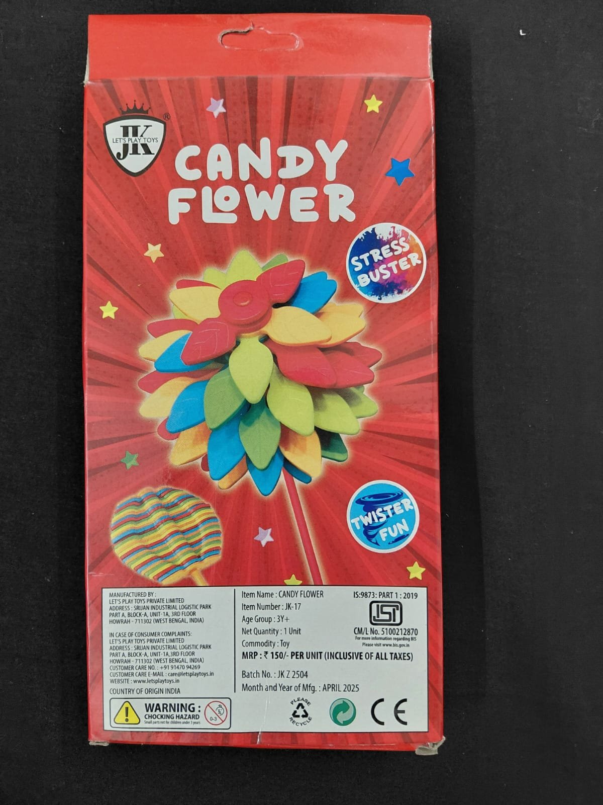 Bright, colorful candy-shaped flower design that attracts attention. Safe and non-toxic materials, perfect for children?s enjoyment. Compact size, ideal for gifting or adding to toy collections.