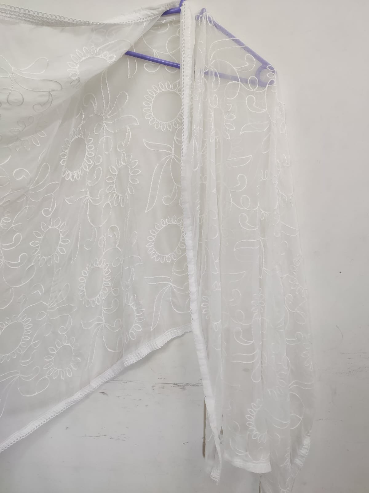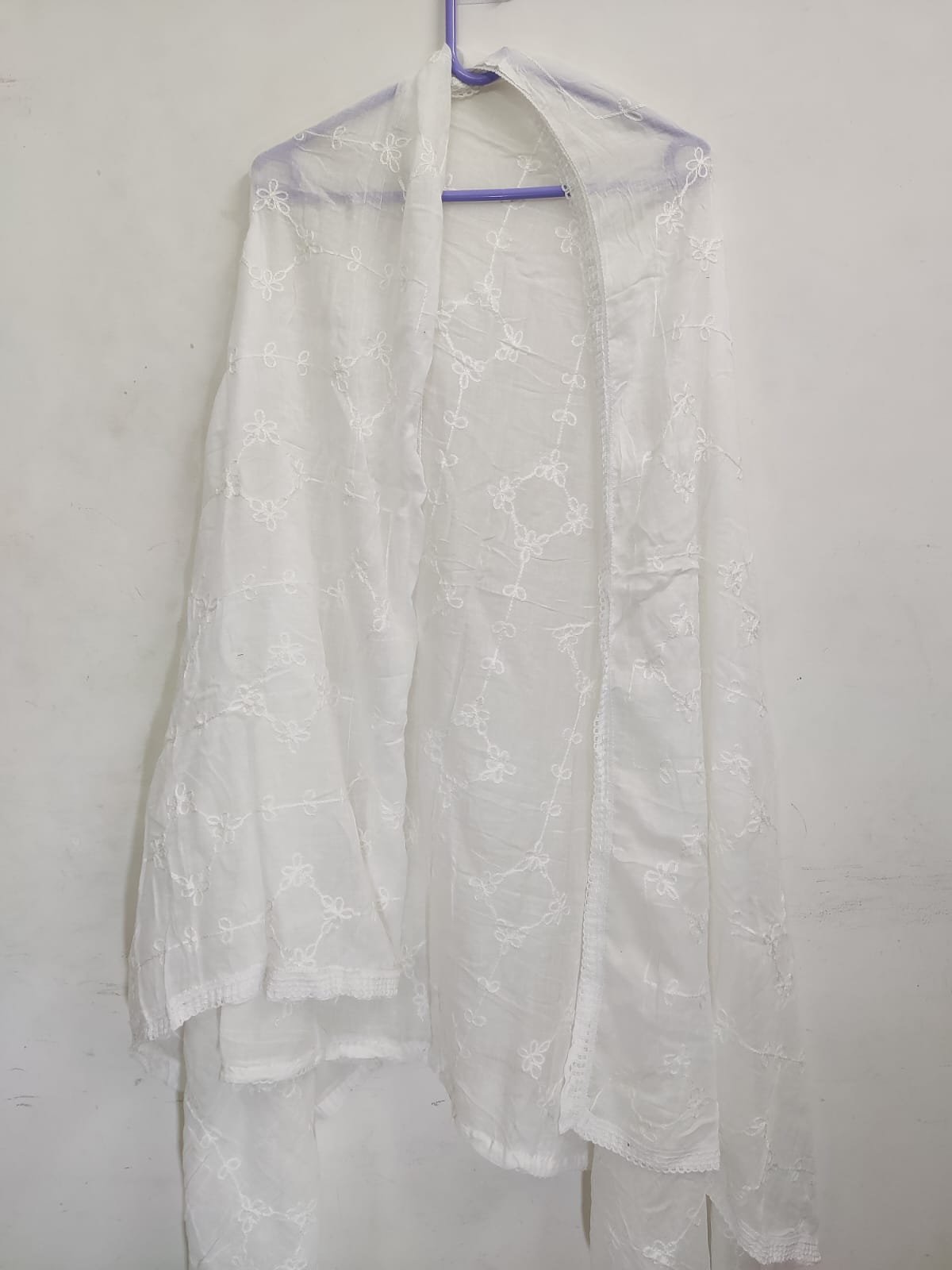 Shadow Wear Fashion: Cotton White Embroidered Dupatta