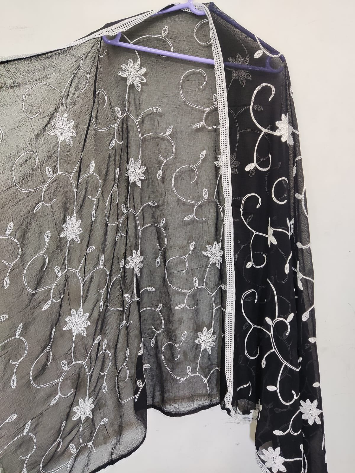 Color: Beautiful Black Dupatta with White Embroidery