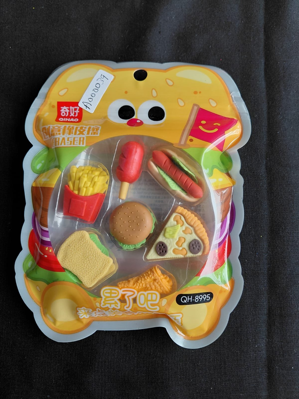 Bring a fun twist to your stationery with our Fast Food Eraser Set! This charming collection includes six ultra-realistic, miniature erasers shaped like your favorite treats: a burger, pizza slice, hotdog, crispy fries, ice cream cone, and toast. Crafted in vibrant colors and compact sizes (approximately 3-4 cm each), these erasers are perfect for brightening up your desk, pencil case, or even gifting to friends. Whether for school, office, or just collecting, these playful erasers add a dash of personality to any workspace.