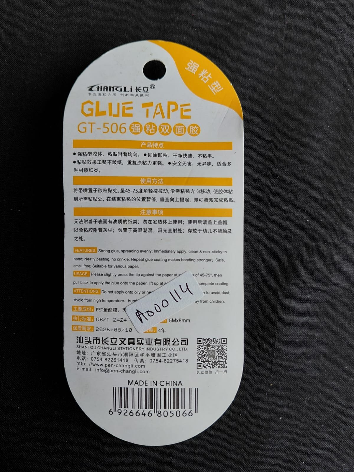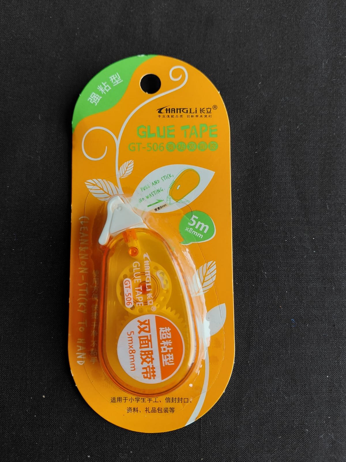 Introducing the Glue Tape GT-506 ? your ultimate solution for mess-free gluing! This compact and portable dispenser features a generous 5-meter long adhesive tape, perfect for school, office, or crafting projects. Its ergonomic design ensures comfortable handling and precise application every time, keeping your work neat and professional. Available in a sleek blue color and measuring just 8 cm x 3 cm, it easily fits into your pencil case or drawer. Ideal for sticking paper, photos, and light crafts without the hassle of liquid glue. Upgrade your stationery and enjoy clean, quick, and reliable adhesion with the GT-506 Glue Tape.