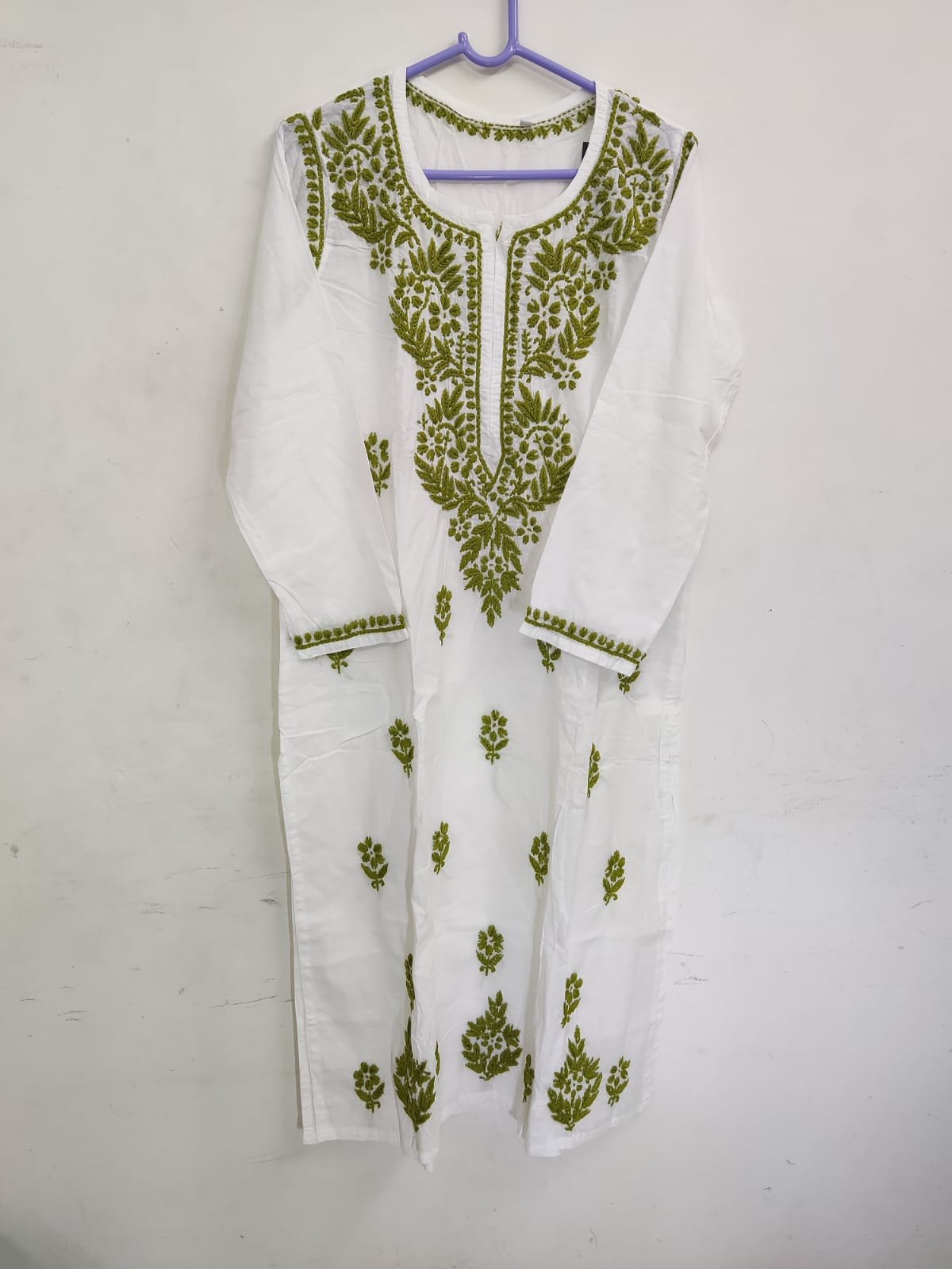 Shadow Wear Fashion:?White Cotton Embroidered Kurta